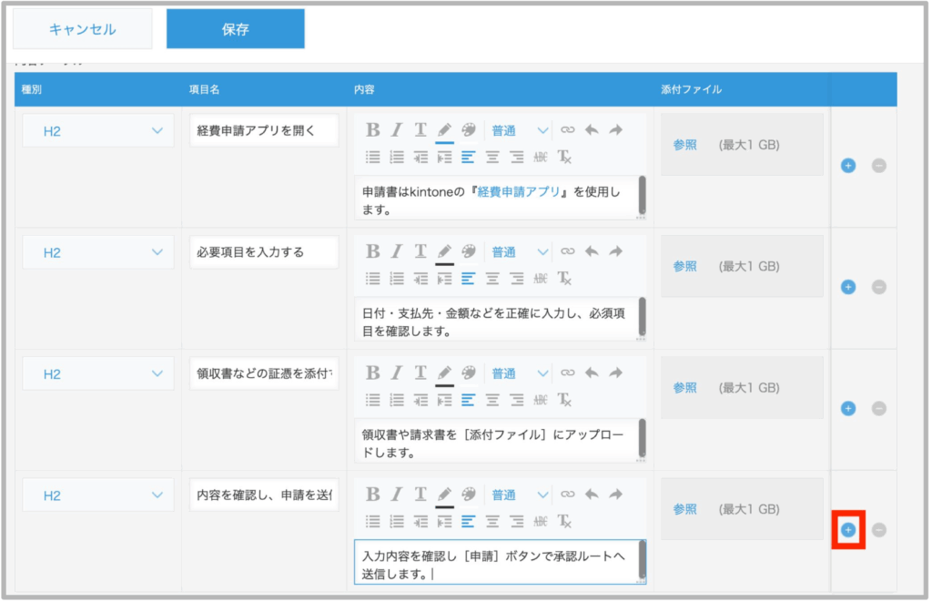 3-4.[+]ボタンをクリックして行を追加すると、必要な数だけ新しい手順を追加できます。