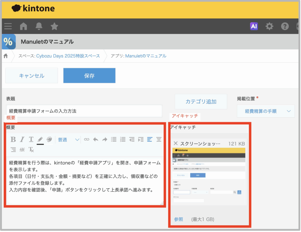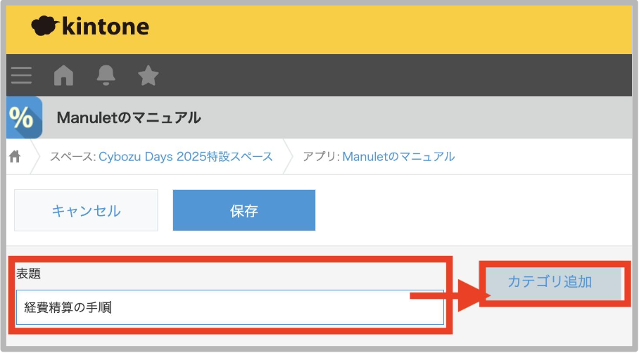 1-2.[表題]にカテゴリ名を入力します。(例:経費精算の手順)